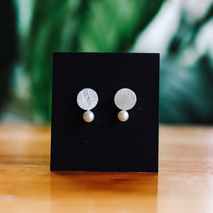 These unique earrings add a playful element to any outfit. Choose your statement with sophisticated freshwater pearls or bold lapis lazuli. Available in sterling silver, oxidized silver (blackened), or vermeil, all with a lightly filed texture.