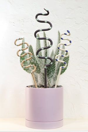 Our ceramic plant snake stakes add a unique and fun addition to any plant! The plant pals come in two sizes (medium & large) and now a selection of our classic colorways. All ceramic snakes are handmade and will differ slightly from the photo. Each one is guaranteed to be silly, sweet and make you smile!