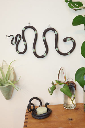 Our classic clay snake goes horizontal! This wall snake is the perfect way to add dimension and a fun wiggle to your gallery wall. They are also cute hung above a mirror or favorite framed print.